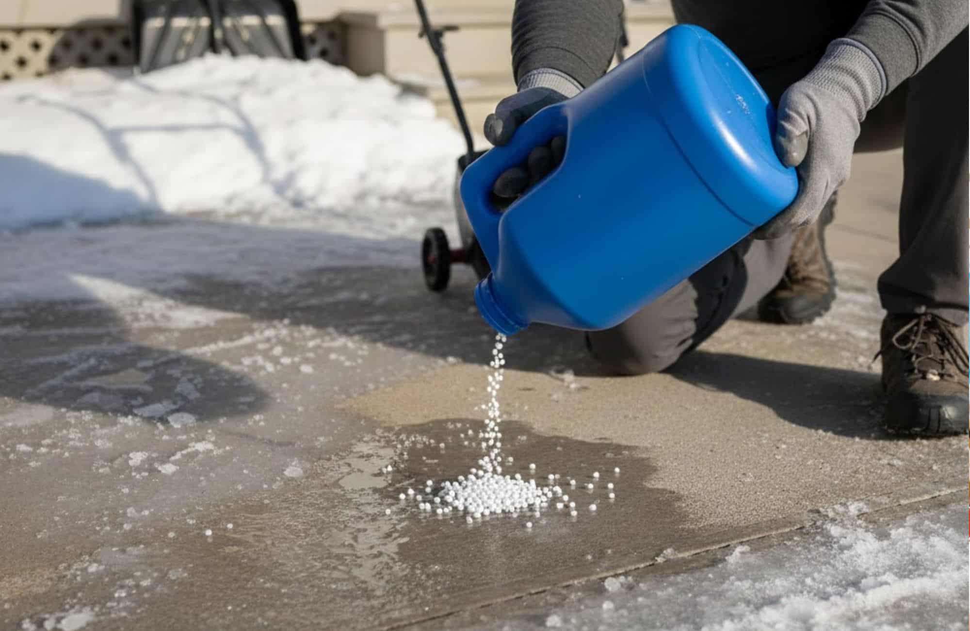 Calcium chloride pellets are a popular choice for melting ice, but they can damage concrete if used on new, weak, or non-air-entrained surfaces. While effective even in very cold temperatures, repeated use can cause cracking, spalling, and corrosion of steel reinforcements. To protect concrete, apply sparingly on fully cured surfaces, use safer alternatives like magnesium chloride or sodium acetate, and consider sealing your concrete before winter. Sand or coffee grounds can also provide traction without chemical damage.